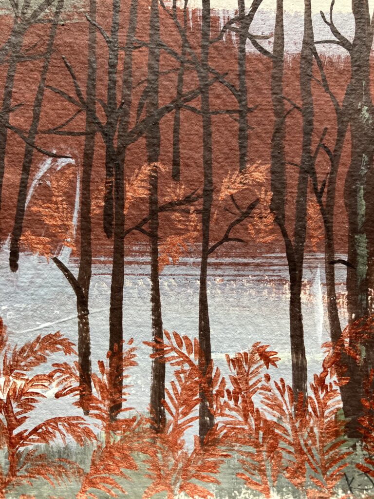 An original miniature painting in acrylic by artist & printmaker Kate Jacobs.