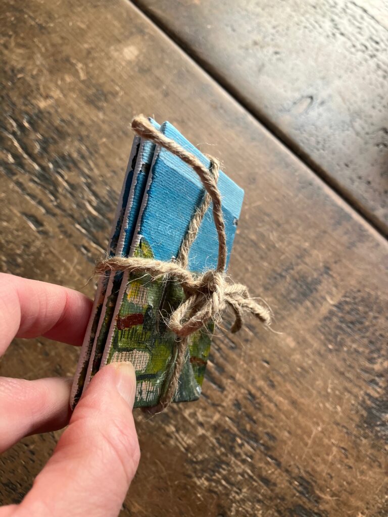 Images below show the triptych painting when canvases pushed together and the tiny size!