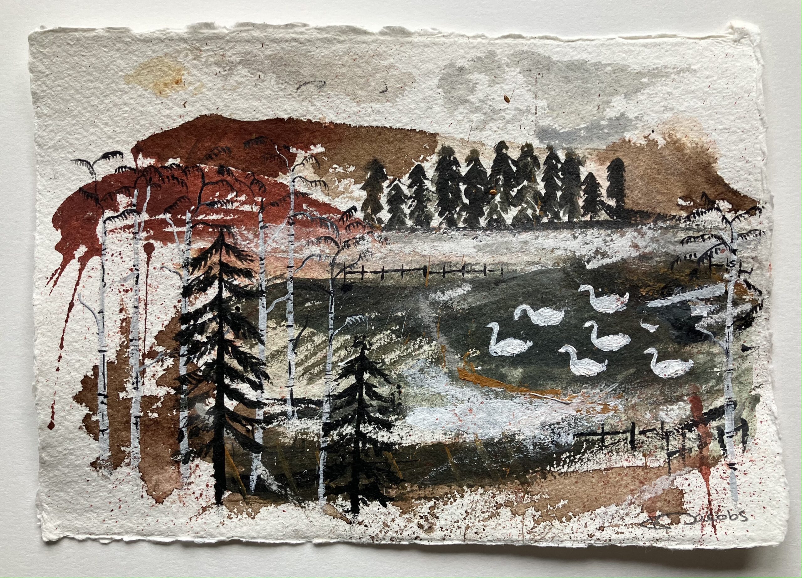 Painted onto A5 100 % handmade cotton rag Khadi paper. Acid Free. 4 deckle edges.