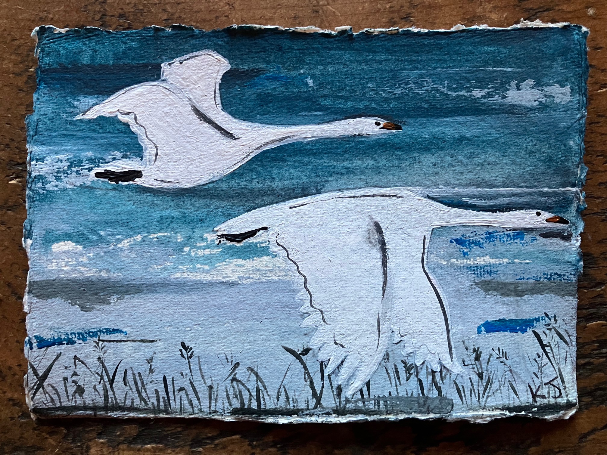 Images below show the 2 paintings of swans and also geese, so you can see how they look together if you were to purchase more than one!