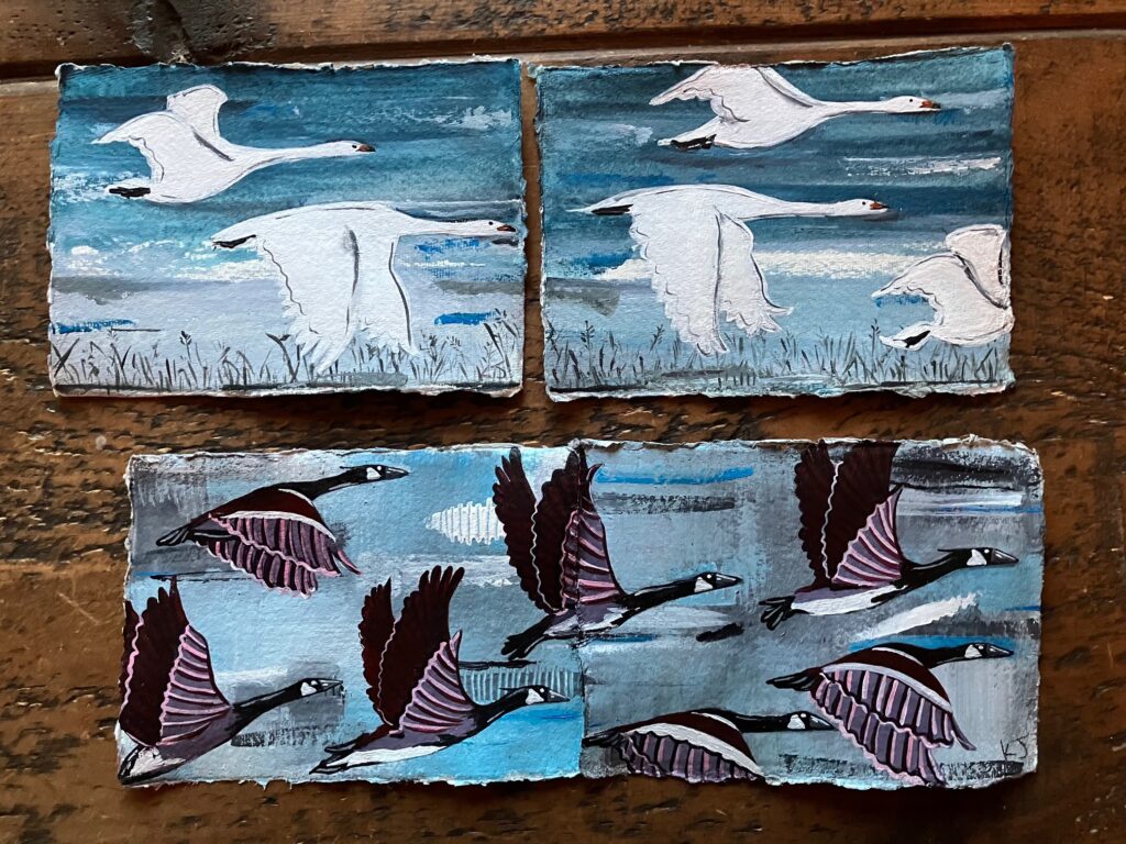We have had so many swans wintering in the fields near our home, I love seeing them taking off or coming into land! Here, I’ve painted two separate paintings (Part 1 and Part 2), available to buy singularly or as a pair!