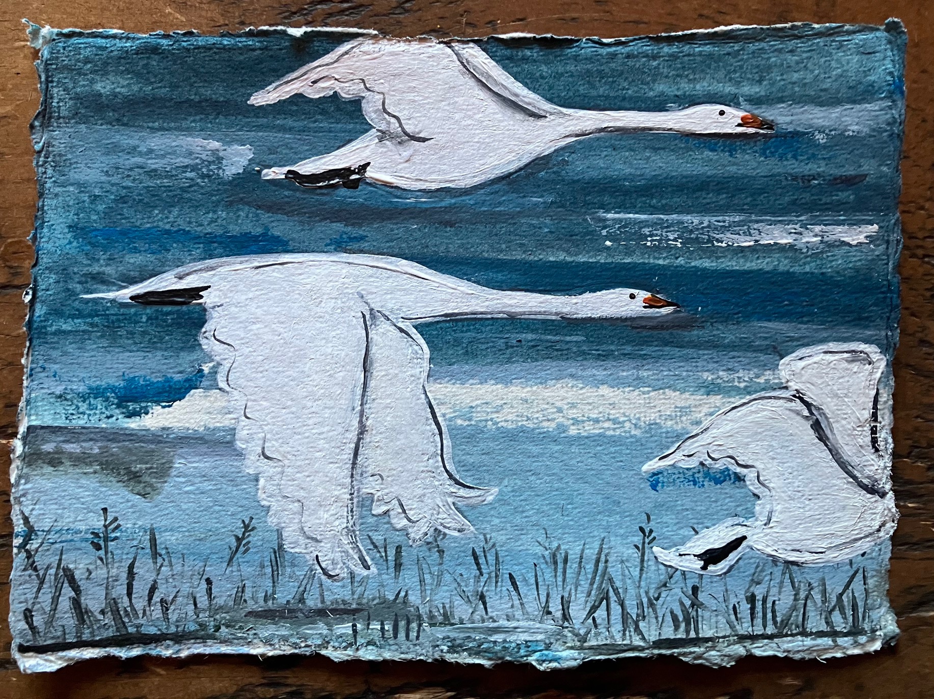 Images below show the 2 paintings of swans and also geese, so you can see how they look together if you were to purchase more than one!
